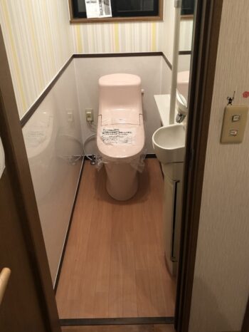 | お客様のご要望 | 腰壁に汚れに強いサニタリーパネルを使ったトイレの全改装を要望されました。 |